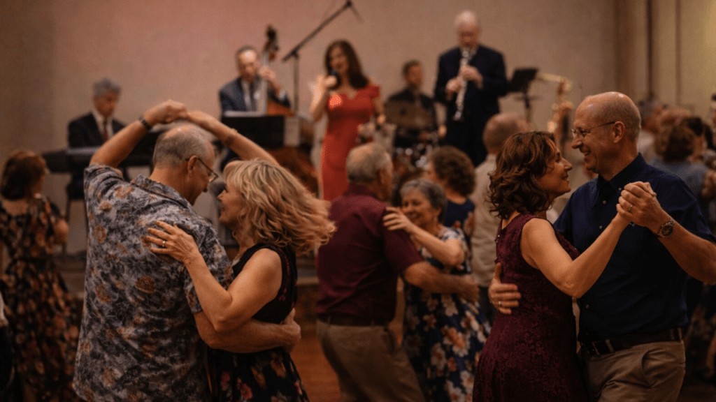 We draw from timeless standards, swing, and dance-friendly classics, presented with a live, responsive feel that keeps dancers connected to the music. The result is a dance floor that stays energized without feeling rushed or chaotic—music that supports flow, connection, and momentum.